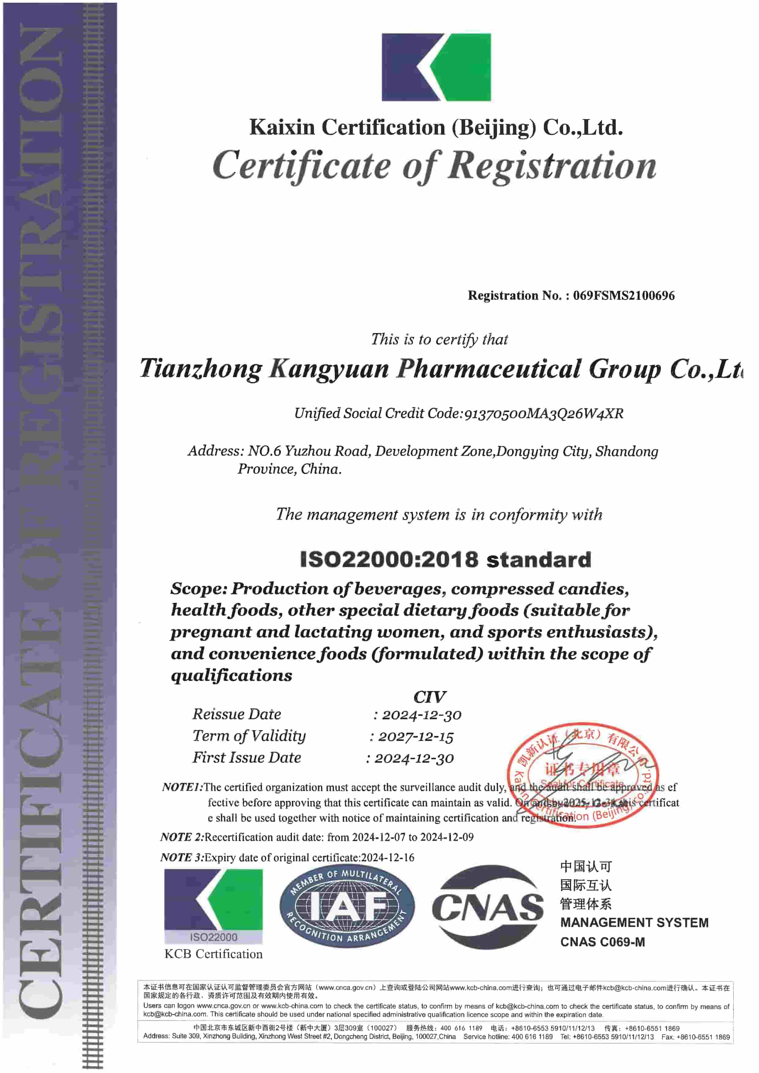 By obtaining the ISO22000 - food safety management system certification, enterprises demonstrate their quality assurance capabilities to the government and consumers, proving that they are capable of providing safe food and services that meet customer needs and comply with relevant regulations.